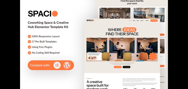 Spacio - Coworking Space & Creative Hub Elementor Template Kit