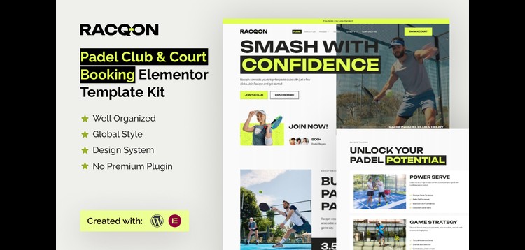 Racqon - Padel Club & Court Booking Elementor Template Kit