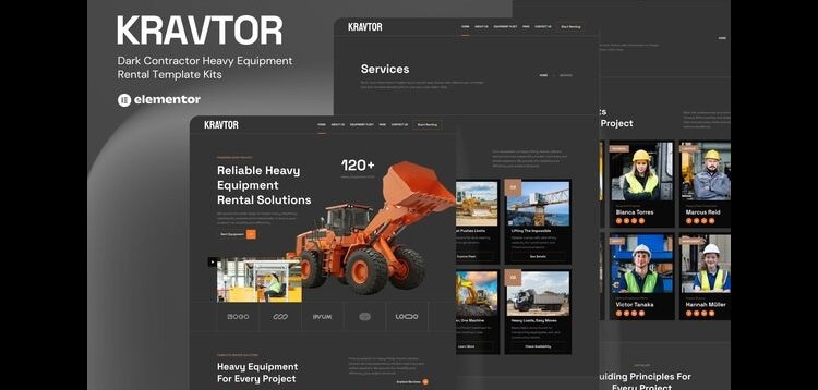 Kravtor - Contractor Heavy Equipment Rental Website Elementor Template Kit