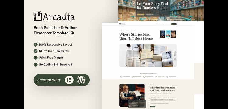 Arcadia - Book Publisher & Author Elementor Template Kit