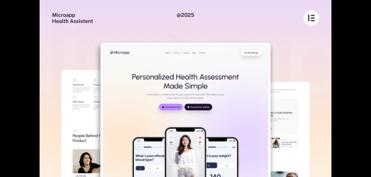 MicroApp - SaaS Mobile App Website Elementor Template Kits