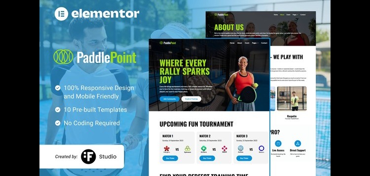 PaddlePoint – Paddle Gear & Court Booking Elementor Template Kit