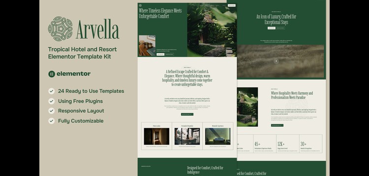 Arvella - Tropical Hotel & Resort Elementor Template Kit
